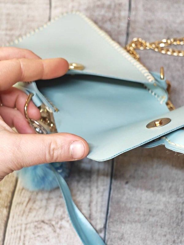 Pochette "Miaou" – L’accessoire artisanal qui a du chien... euh, du chat ! Craquez pour cette adorable pochette bandoulière entièrement faite main. Avec sa teinte bleu pastel apaisante et son empiècement en forme de chat, elle apporte une touche de poésie à toutes vos tenues. Le petit plus : Ses coutures apparentes à la main qui soulignent son authenticité. Style : Une chaîne dorée élégante pour un porté épaule chic. Accessoire inclus : Un pompon tout doux assorti pour une touche de fun ! Parfait pour emporter votre téléphone et vos essentiels avec légèreté.