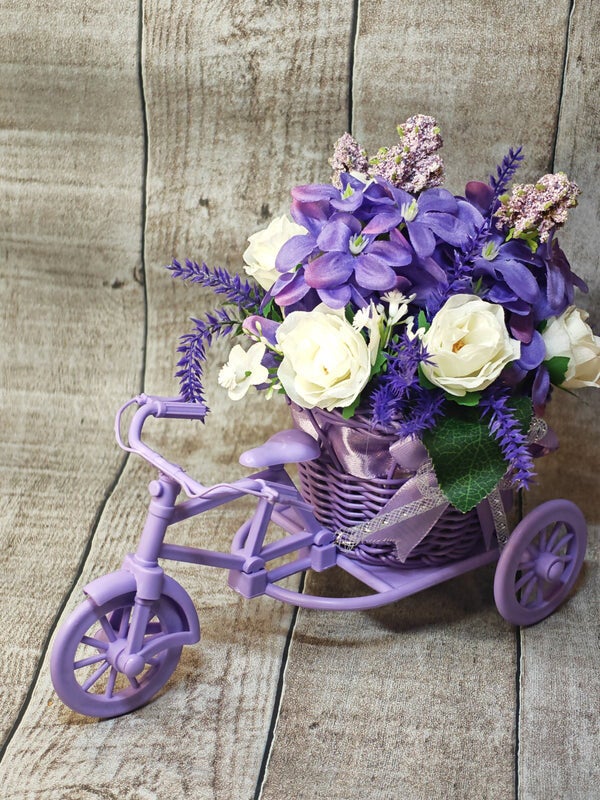 ✨ Tricycle Fleuri "Éclat de Lavande" – Composition Artisanale Romantique Apportez une touche de douceur printanière et de charme champêtre à votre intérieur avec cette décoration florale unique, entièrement assemblée à la main. Ce petit tricycle violet, chargé de fleurs délicates, est l'accessoire parfait pour illuminer une étagère, une table de chevet ou un centre de table. 💜