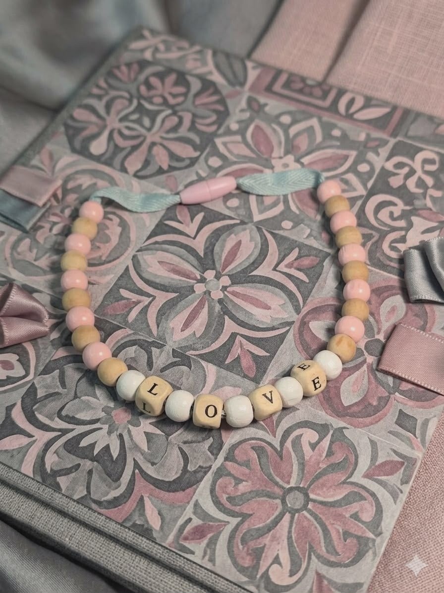 ​Célébrez le lien indéfectible qui vous unit à votre enfant avec ce magnifique collier de portage personnalisé. Alliant la chaleur du bois naturel à la délicatesse du rose poudré, cet accessoire est une déclaration d'amour à porter contre soi.
